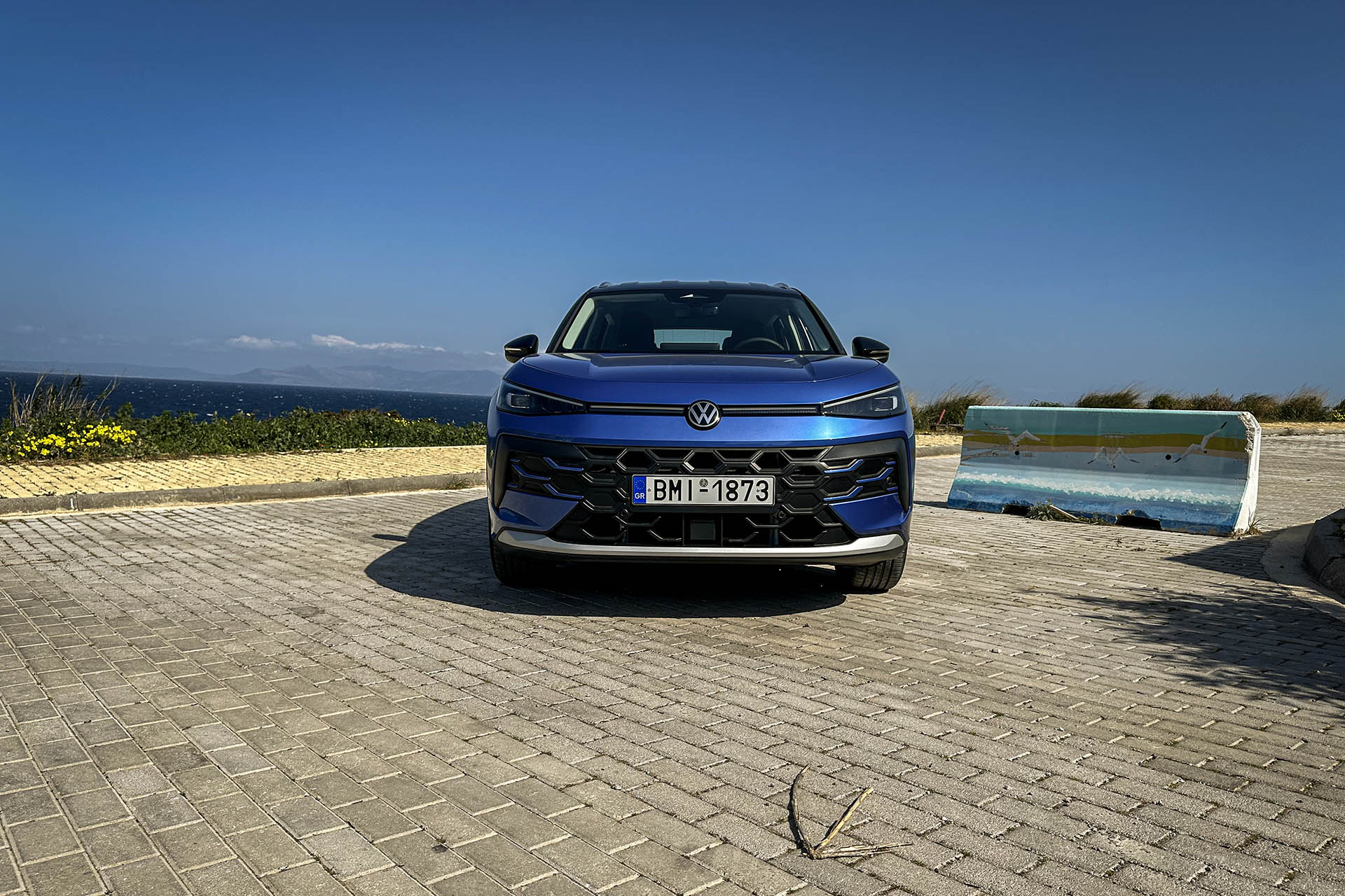 Η αεροδυναμική διαμόρφωση γίνεται αισθητή από την πρώτη ματιά, με τη μάσκα να υιοθετεί τη σύγχρονη σχεδιαστική γλώσσα της Volkswagen, που το συνδέουν αισθητικά με μοντέλα όπως το Tayron και το ηλεκτρικό ΙD.7. Το φωτιζόμενο το έμβλημα VW πλαισιώνεται από μία φωτεινή λωρίδα που ενώνει τα LED Plus φώτα, τα οποία στρίβουν μαζί με το τιμόνι, συνθέτοντας ένα φουτουριστικό σύνολο με υπογραφή που ξεχωρίζει.