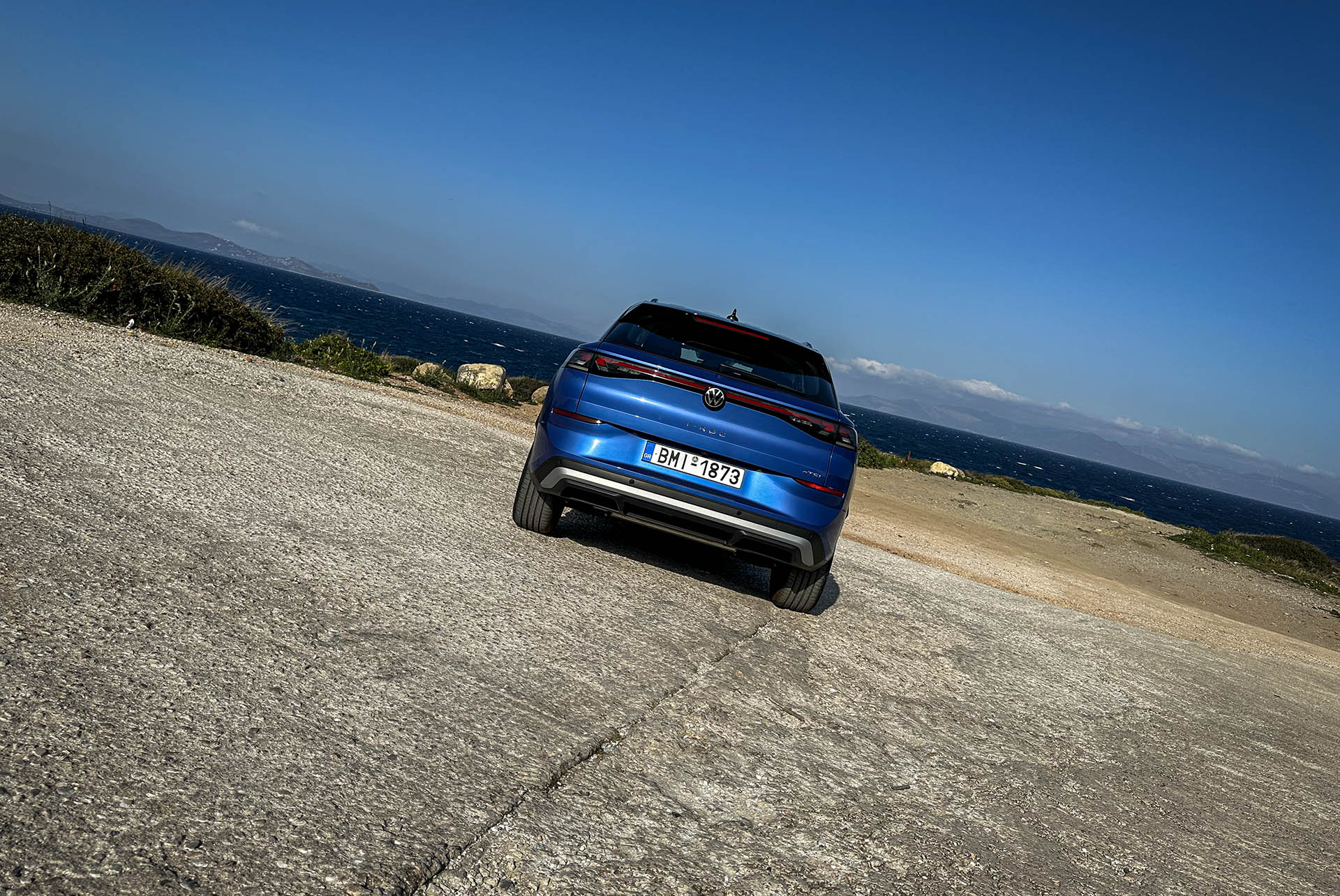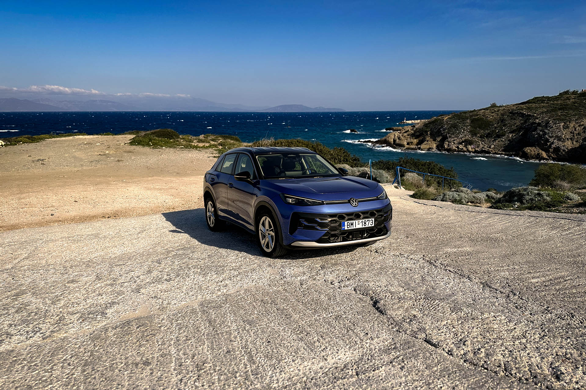 Το σύνολο τονίζεται από τη χρωματική αντίθεση της μαύρης οροφής με τις ασημί ράγες. Στην έκδοση Style είναι φωτιζόμενες και οι χειρολαβές, ενώ οι πλευρικοί καθρέπτες προβάλλουν στο έδαφος το έμβλημα της VW. «Φοράει» ζάντες 18 ιντσών, με αρκετά φαρδιά ελαστικά, διαστάσεων 225/50.