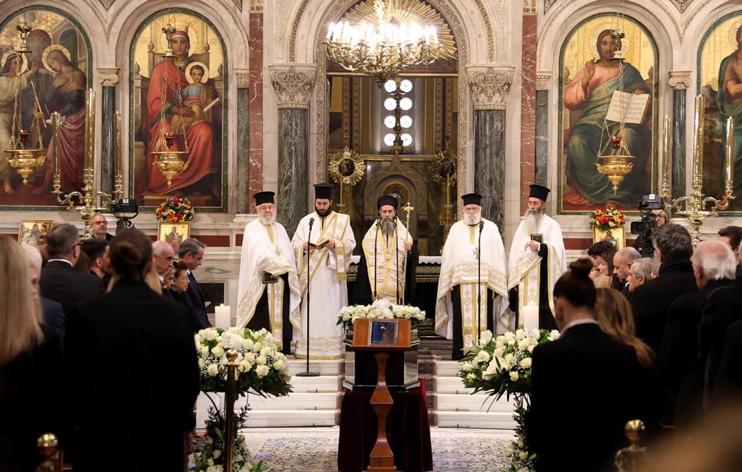 Η εξόδιος ακολουθία τελείται παρουσία του πρωθυπουργού Κυριάκου Μητσοτάκη