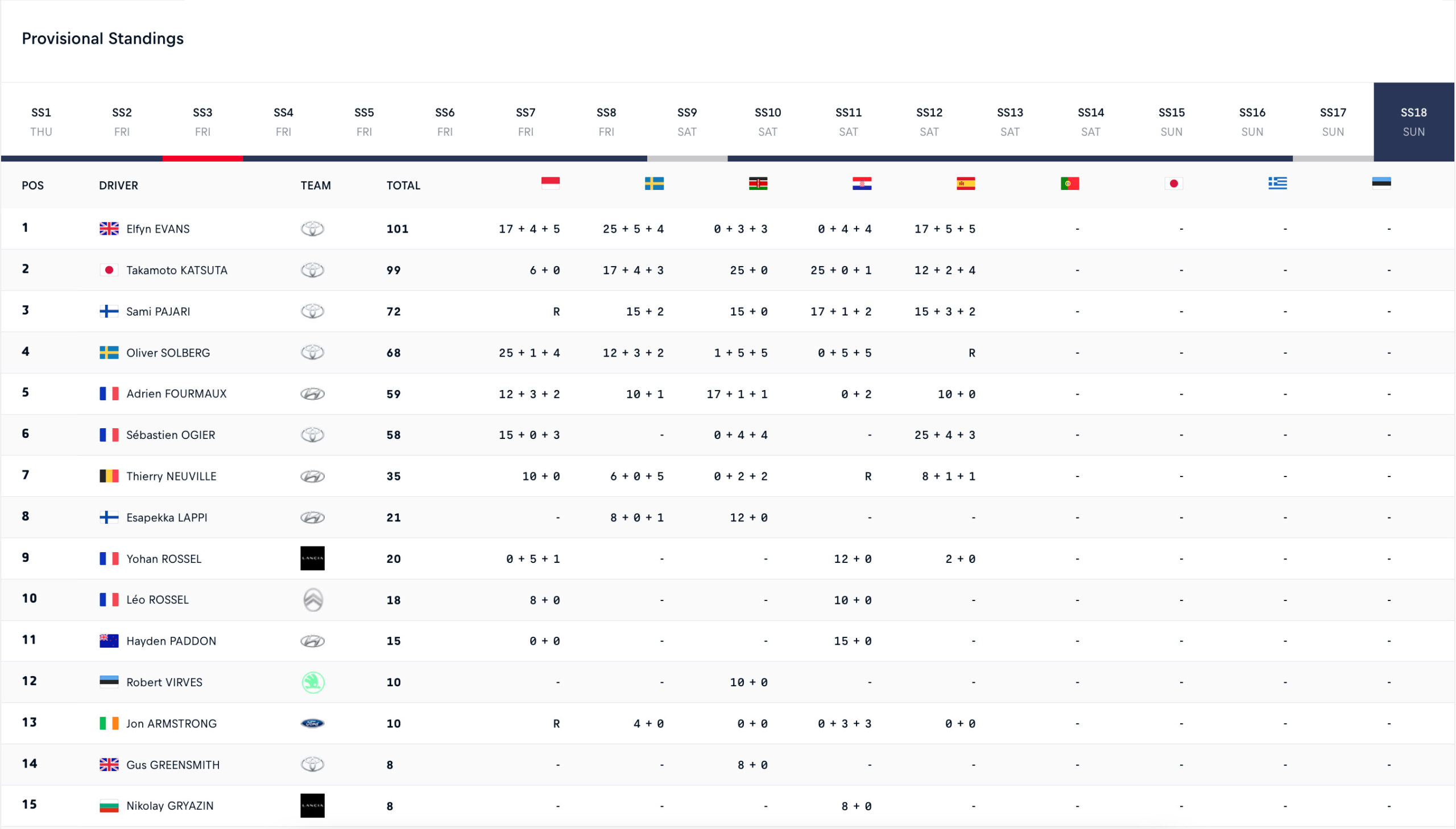 Στο βάθρο ανέβηκε για μία τέταρτη συνεχόμενη φορά ο Φινλανδός Sami Pajari, o ο οποίος όμως δεν ήταν ικανοποιημένος από το ρυθμό του σε αυτό τον αγώνα, αφού δεν είχε τη δυνατότητα να απειλήσει τους προπορευόμενους οδηγούς με το ίδιο αυτοκίνητο. Το ίδιο ισχύει και για τον πρώην επικεφαλής της βαθμολογίας και νικητή των δύο προηγούμενων αγώνων, Takamoto Katsuta, ο οποίος βρίσκεται πλέον 2 βαθμούς πίσω από τον Evans στη βαθμολογία, έχοντας σημειώσει τον 2ο χρόνο στην Power Stage.