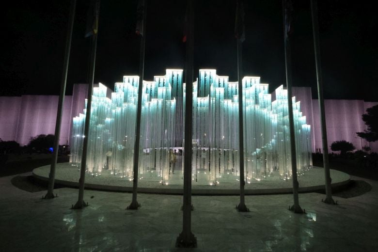 Τα ονόματα «αιωρούνται στον χώρο», ενώ και ο βραδινός φωτισμός των γυαλιών τους προσδίδει ιδιαίτερες χρωματικές ανταύγειες.