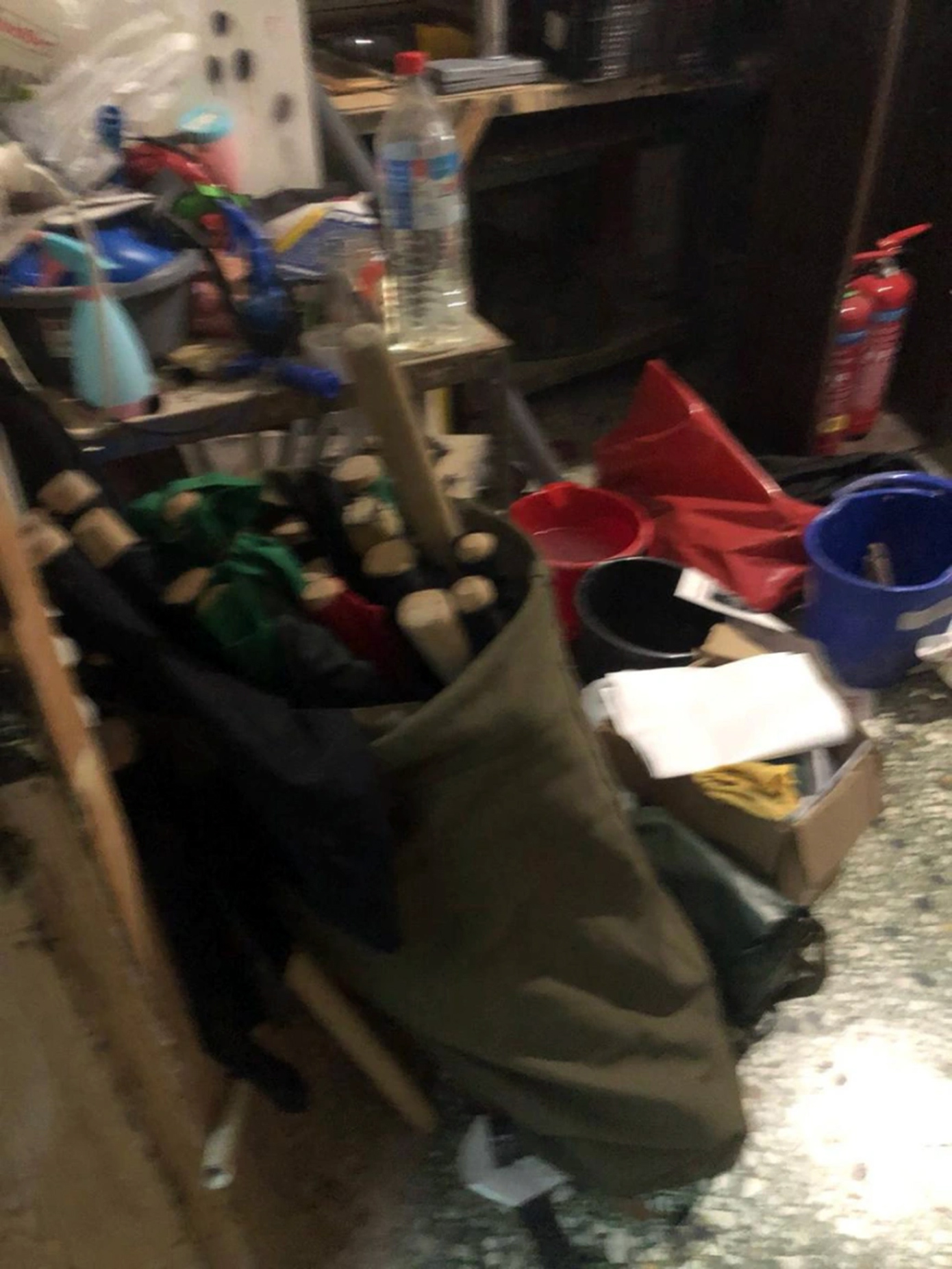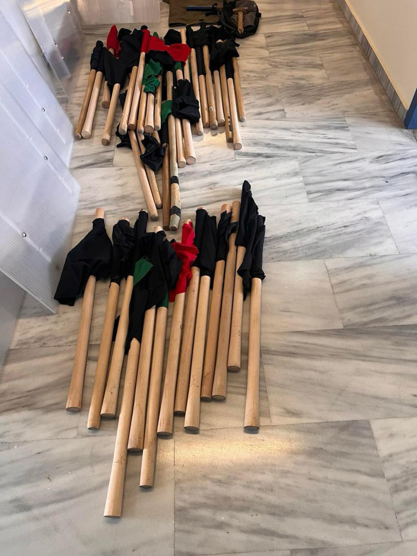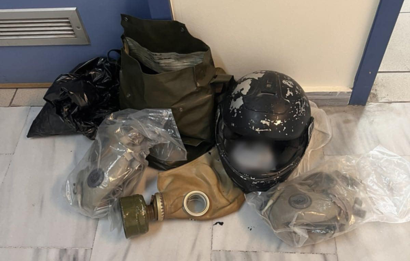 - είδη ρουχισμού (κουκούλες full face, καπέλο, παντελόνια, μπλούζες με ενσωματωμένες κουκούλες κλπ.), 38 ρόπαλα – ξύλινα κοντάρια,
