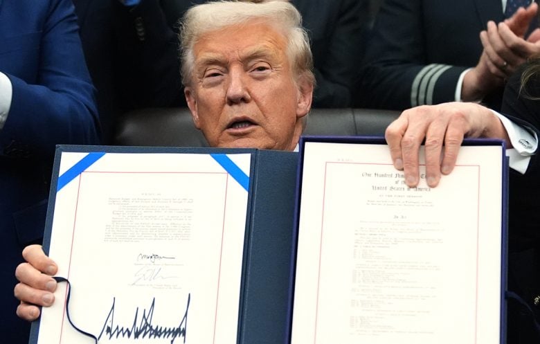 «Σήμερα στέλνουμε το σαφές μήνυμα ότι δεν υποχωρούμε ποτέ σε εκβιασμούς», πέταξε δηκτικά ο μεγιστάνας απευθυνόμενος στους Δημοκρατικούς αντιπάλους του, προτού υπογράψει το κείμενο, επευφημούμενος από Ρεπουμπλικάνους κοινοβουλευτικούς που τον πλαισίωναν στο Οβάλ Γραφείο.