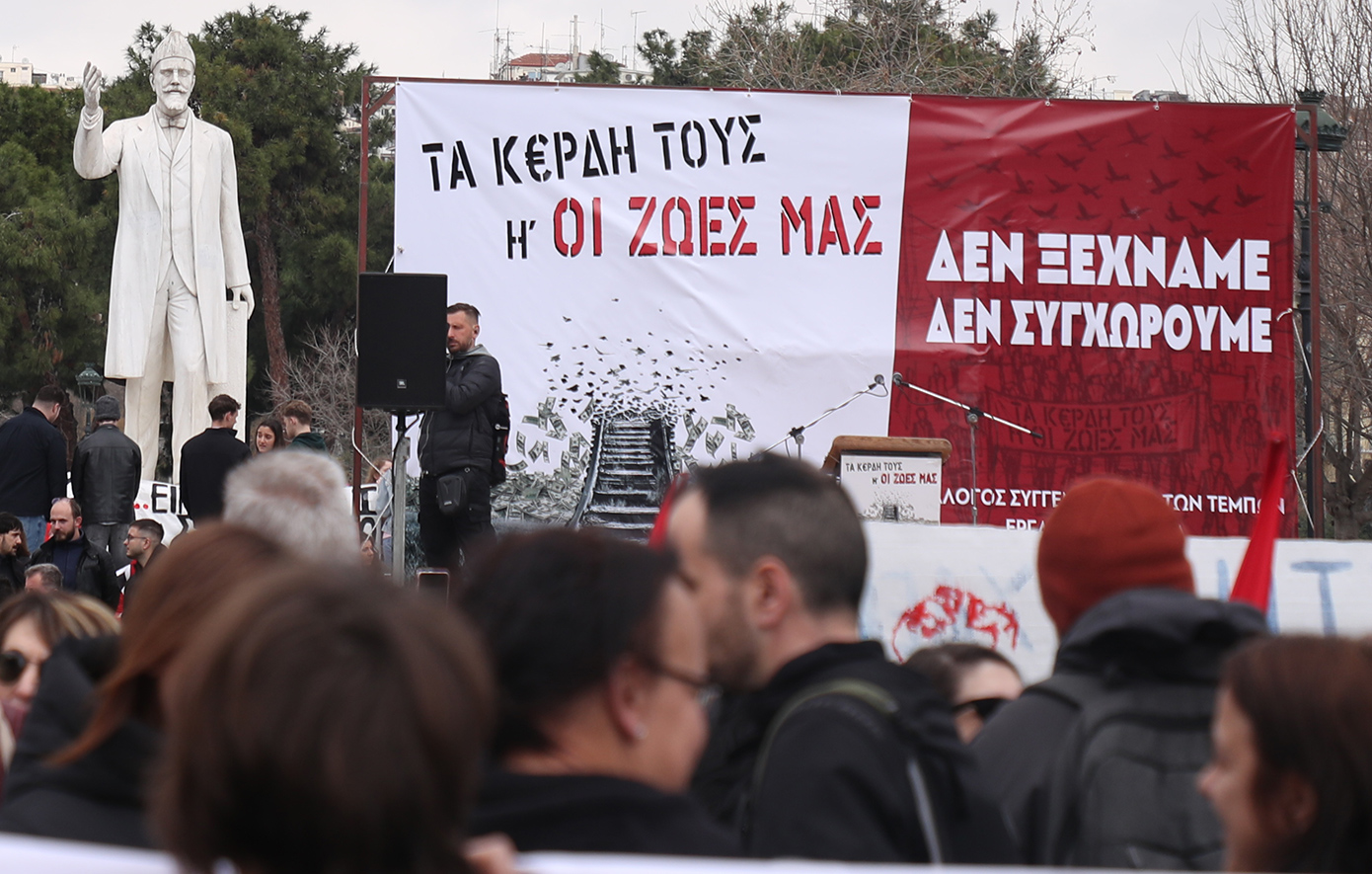 «Τα κέρδη τους ή οι ζωές μας. Δεν ήταν ατύχημα, ήταν δολοφονία. Δεν ξεχνάμε, δεν συγχωρούμε»