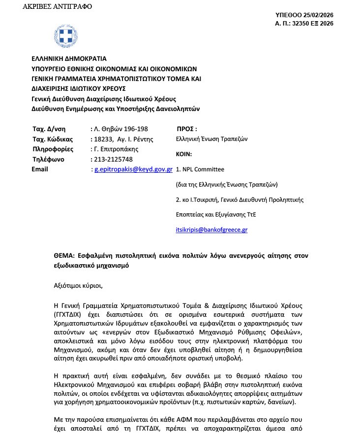 «Η πρακτική αυτή είναι εσφαλμένη, δεν συνάδει με το θεσμικό πλαίσιο και επιφέρει σοβαρή βλάβη στην πιστοληπτική εικόνα των πολιτών».