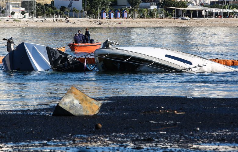 Παράλληλα, οι Λιμενικές Αρχές έχουν αποκλείσει την περιοχή μέχρι την ολοκλήρωση των διαδικασιών απορρύπανσης και ανέλκυσης των βυθισμένων σκαφών.