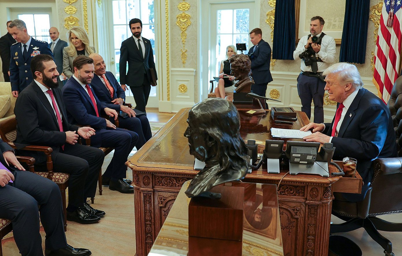 Από τη «μαύρη λίστα» του FBI με τους καταζητούμενους για τρομοκρατία, σε μια ιστορική επίσκεψη στον Λευκό Οίκο. Ο μεταβατικός πρόεδρος της Συρίας, Άχμεντ αλ Σάρα, έγινε δεκτός από τον πρόεδρο των ΗΠΑ Ντόναλντ Τραμπ, σε άλλο ένα σημαντικό ορόσημο για τον πρώην τζιχαντιστή.