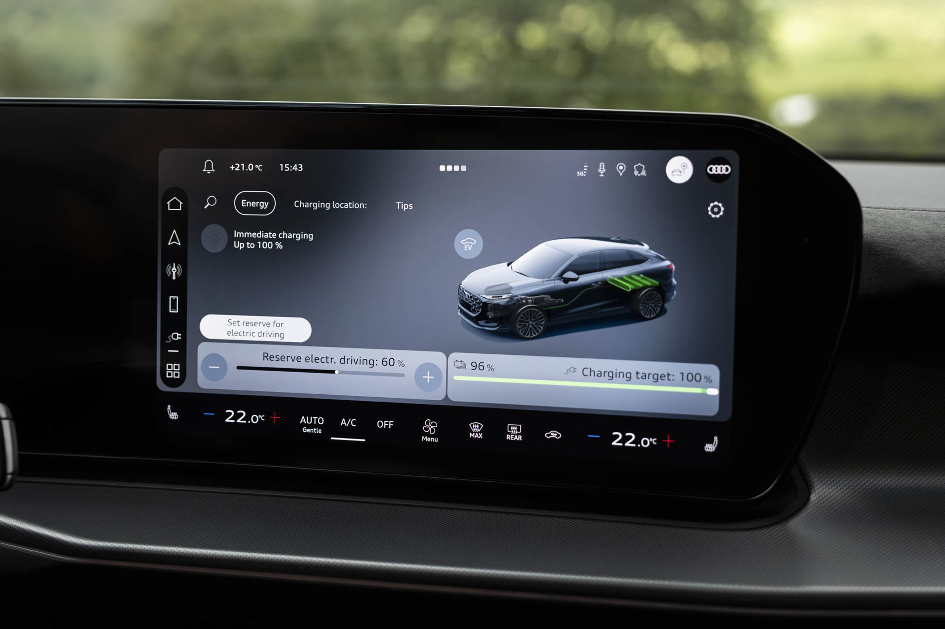 Η οθόνη αφής MMI με διαγώνιο 12,8”, διαθέτει υψηλή ανάλυση γραφικών και ταχύτατη απόκριση, λειτουργώντας άψογα ως κεντρικός κόμβος για όλες τις λειτουργίες του οχήματος. Ασύρματη σύνδεση με Apple CarPlay και Android Auto, καθώς και επαγωγική θέση φόρτισης του smartphone ανάγουν τα καλώδια σύνδεσης σε επιλογή και όχι αναγκαιότητα. Επίσης, η τοποθέτηση του επιλογέα κίνηση στην κολόνα του τιμονιού ελευθερώνει επιπλέον χώρο στην κεντρική κονσόλα.