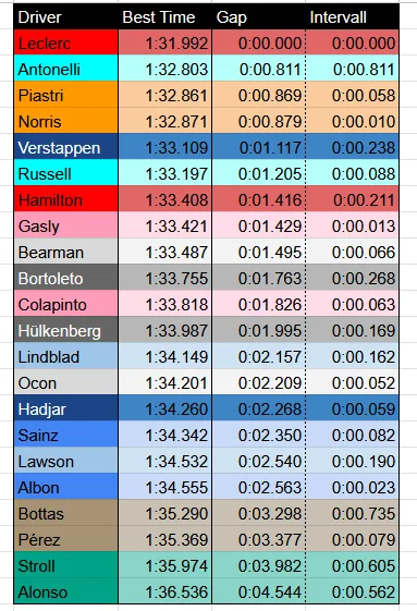 Ωστόσο, ο Ολλανδός κατάφερε να βρεθεί μπροστά από τον George Russell (1,2 δλ. μακριά από την κορυφή), που ανέλαβε τη Mercedes το απόγευμα. Η γερμανική ομάδα φαίνεται να έχει βελτιώσει τις εκκινήσεις της, καθώς ο Βρετανός τις χαρακτήρισε τις χειρότερες που είχε στην καριέρα του, αλλά η Ferrari εξακολουθεί να έχει πλεονέκτημα σε αυτόν τον -πολύ σημαντικό- τομέα.