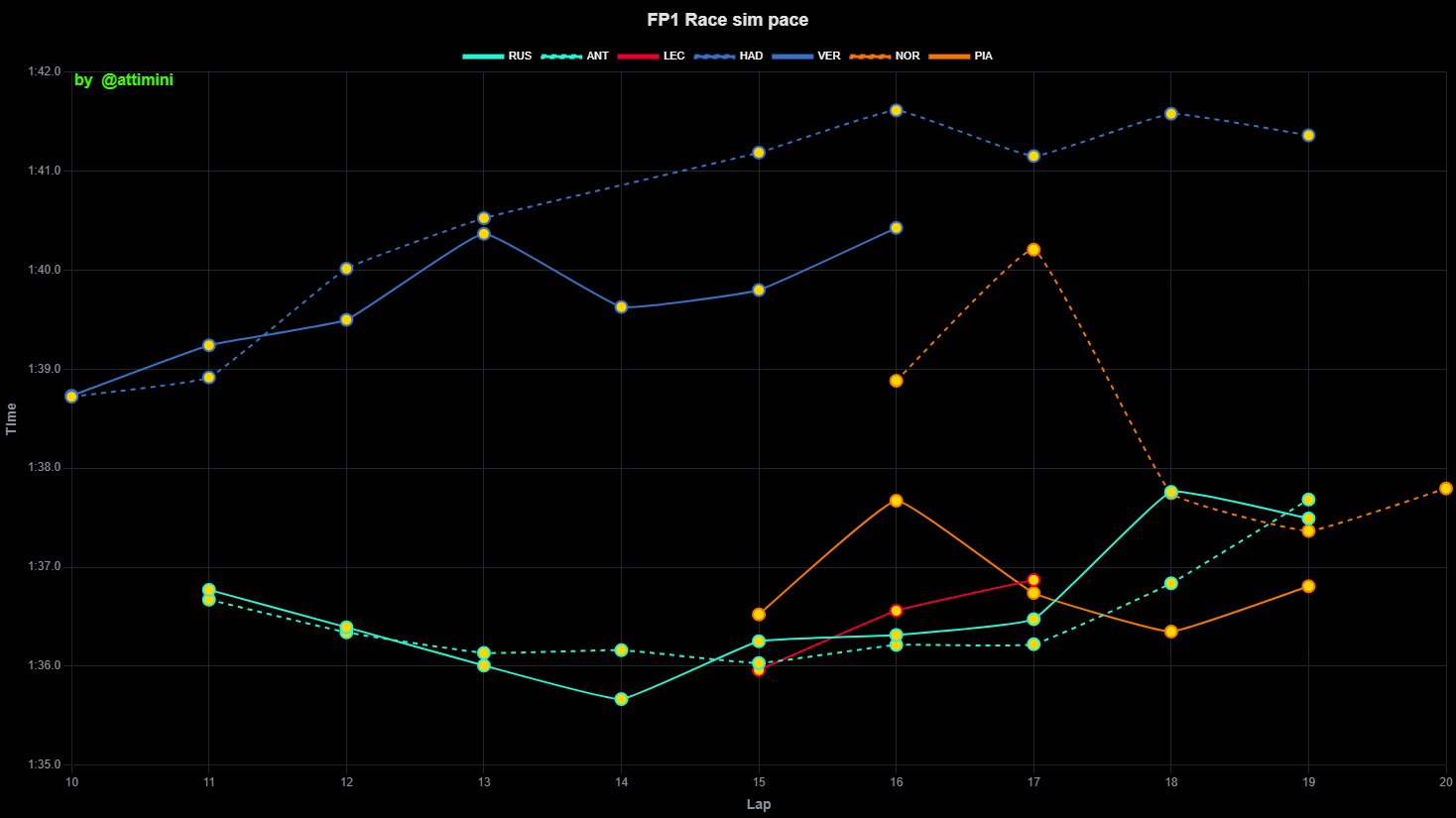 Ο Andrea Kimi Antonelli, κατάφερε να πλησιάσει τον team-mate του στα 0,12 δλ. και ο χρόνος του ήταν εντυπωσιακός, δεδομένου ότι είχε ήδη κάνει 5 γύρους με τα μαλακά ελαστικά του. Το μεγάλο πλεονέκτημα της Mercedes εξακολουθεί να εντοπίζεται στις ευθείες, ενώ είδαμε πολλά μονοθέσια να γυρίζουν σε λειτουργία ανάκτησης ενέργειας πολύ νωρίς στη μεγάλη πίσω ευθεία.