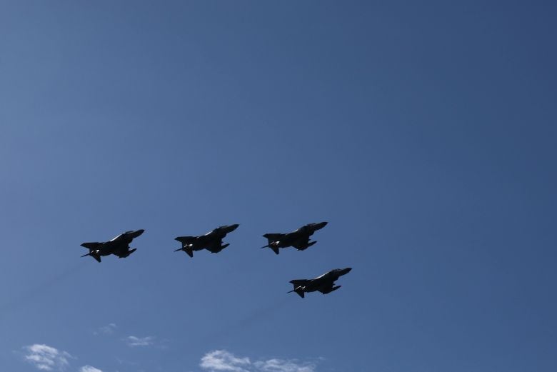 Οι κάτοικοι της πόλης και οι θεατές της παρέλασης απόλαυσαν με εξαιρετικό καιρό και διελεύσεις μαχητικών F-16, Mirage 2000-5, F-4Ε Phantom σε κύματα, αλλά και αεροσκάφος εναέριας Διοίκησης και Ελέγχου Erieye EMB-145 AEW&C