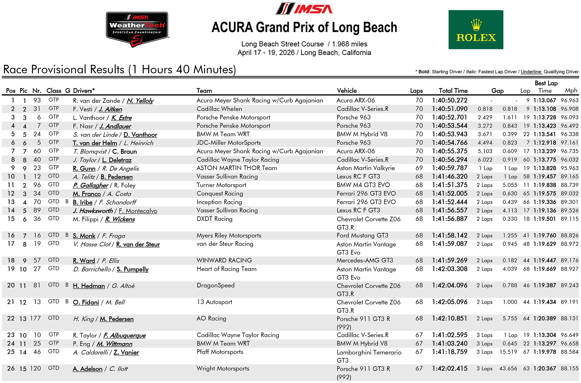 IMSA Αποτελέσματα αγώνα Long Beach 2026